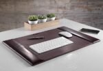 keyboard, and coffee cup, offering desk protection against scratches while enhancing your office environment with vibrant colors using a genuine leather desk mat.